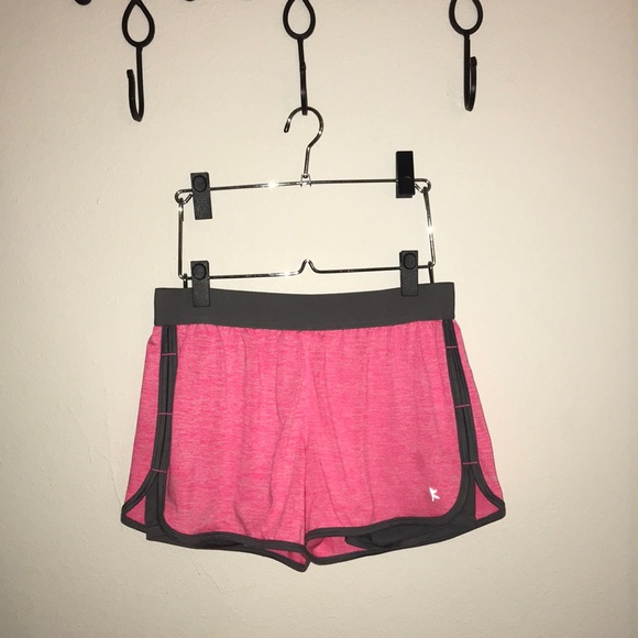 Pink and gray athletic shorts. Gray inner lining. Breathable material.