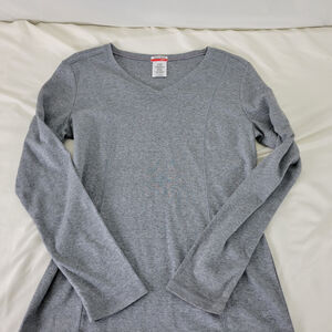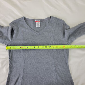 Danskin Now Shirt Womens Small Gray Activewear Long Sleeve V Neck 100% Cotton
