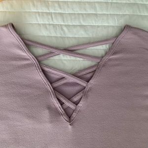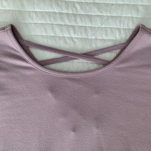 Danskin Now Top Criss Cross Long Sleeve Curved Hem Cuffed Mauve Pink