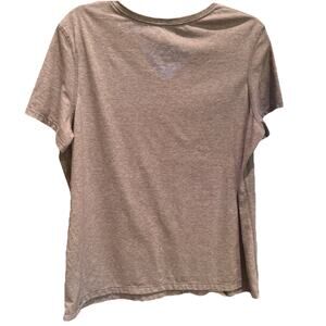 This Danskin Now Women's 2XL T-Shirt in gray features a V-neck and a semi-fitted, relaxed fit. Made from a blend of polyester and cotton, this activewear top has dolman sleeves and a pullover closure for easy wear. The shirt is designed for comfort and breathability, making it ideal for activities like gym training, cross-training, and running. The graphic "Earn It" adds a motivational touch, while the lightweight fabric and stretch material provide flexibility for movement during workouts in the summer, fall, or spring seasons. This shirt comes from a smoke free and dog loving home. Offers always welcome.