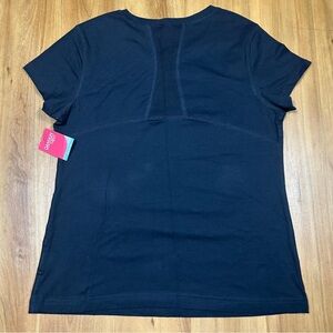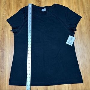 Sleek black short sleeve top. Perfect for casual outings. Soft and comfortable fabric.