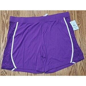 Danskin Now Women's Plus Size 2X Purple patten Running Shorts Drawstring Waist
