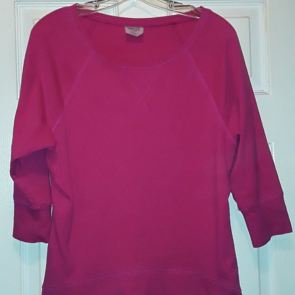 Danskin Now womens pink 2 piece shirt/pant set size Small...cotton blend...shirt is long sleeve round neck pull over...length 23 inches....shoulders 15 inches...chest 17 inches...sleeve 16 inches...inseam 12 inches.....pants are pull up,with stretch waist,and string pull tie.....2 front pockets....length 41 inches....inseam 30 inches...waist 14 inches.....good condition..