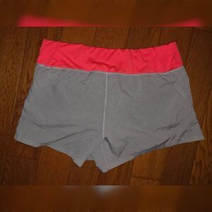 Danskin Size Small Gray Athletic Workout Shorts w/ Neon Coral/Pink Waistband