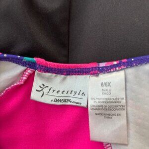 Super cute and comfy purple romper from Danskin's Freestyle line! It’s got a fun sparkly finish that really catches the light — perfect for gymnastics, dance, or tumbling practice. Size small (youth). Stretchy material, easy to move in. Sparkly purple with a simple scoop neck. Great Condition. No rips and no frays. From a pet free and non smoking home.