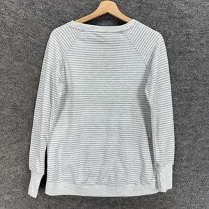 Danskin Sweatshirt Women S Small Gray Striped Long Sleeve Pullover Rayon Casual