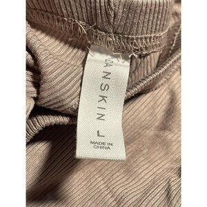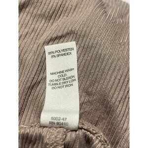 Comfortable Danskin lounge pants in taupe with a ribbed design. Made of 95% polyester and 5% spandex, these machine washable pants offer a relaxed fit with stretch. No pockets.