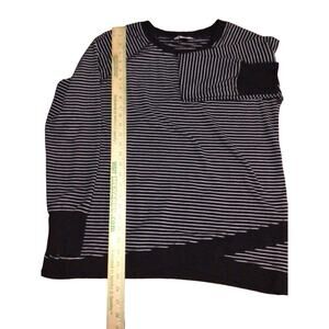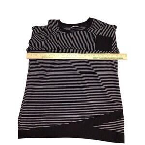 Danskin Women Activewear Top Large Black White Striped T-Shirt Faux Wrap Tee