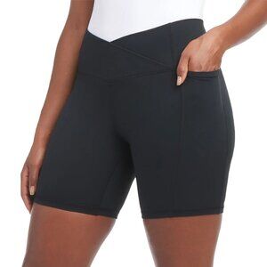 Danskin Women's Cross Waist 2-Pack Bike Shorts, Side Pockets