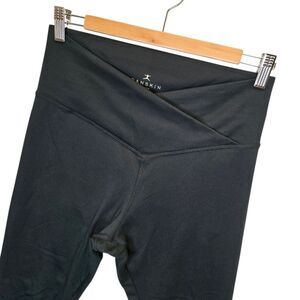 Danskin Women's M Crossover Waist Black Crop Leggings. Comfortable and stylish black leggings. Perfect for everyday wear. No-pinch crossover elastic waistband that adds support while contouring your shape. Providing gentle compression leaving you with a cool smooth feel. Cross front seams that provide a secure, flattering fit. Moisture wicking with 4 way stretch