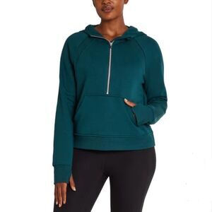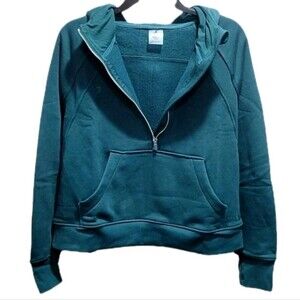 Danskin Women's M Half Zip Crop Hoodie Dark Sea Green Thumbholes Kangaroo Pocket