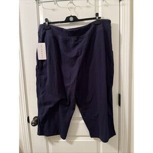 Danskin Women's Plus Size 3X Drawstring Cropped Pants Pockets Navy Blue new with tag.