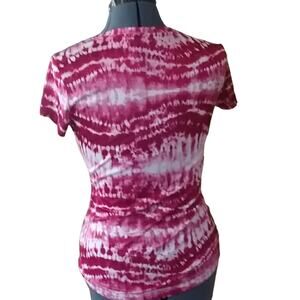 Medium gently used tie dye T-shirt. Pink and white. V-neck athletic top.