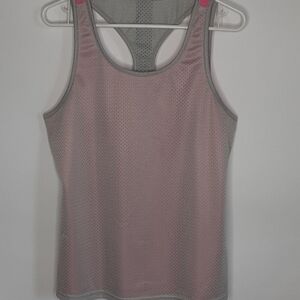 Pink and gray reasonable tank top.no size tag.Measurement pit tp pit flat lay 19 inches. In good preowned condition.Reasonable offers welcome.