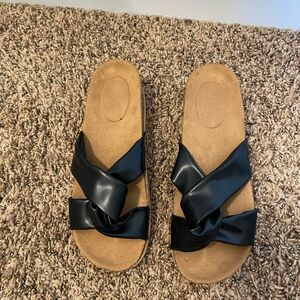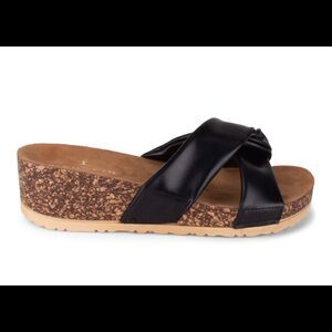 Danskin Faith slip on sandal with metallic upper and knotted detail.