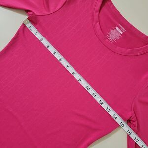 Swap out your plain white tee for a fitted, bright pink crewneck in soft jersey. With four-way stretch and Dri-More moisture-wicking fabric, you'll feel comfortable and dry all day long. Breathe in and out with ease in this breezy tee by Danskin. Excellent, new condition.