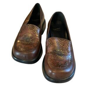 Dansko 39 Ladies 8.5-9 Brandy Black Burnished Leather Mary Jane Hook Loop Shoes
