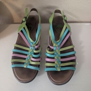 A pair of women's Danskos Brandy Mary Janes hook and loop strap shoes.