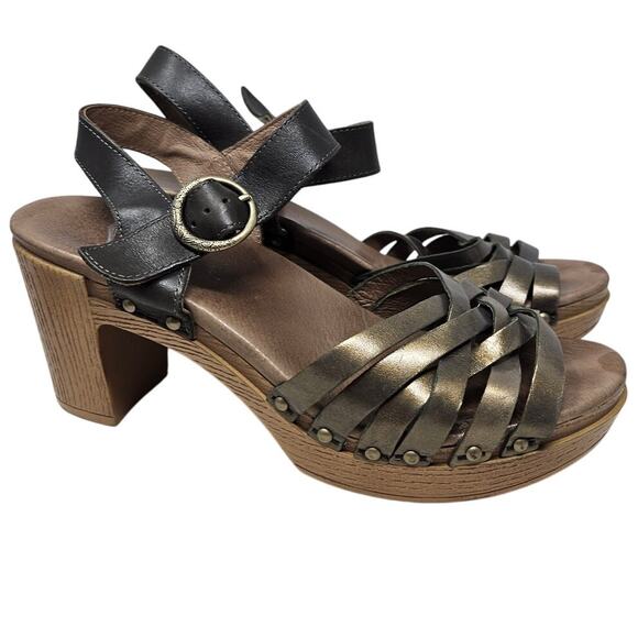Dansko 40 Dawson Metallic Brown Leather Chunky Sandal Boho Comfort Coastal
