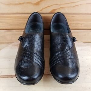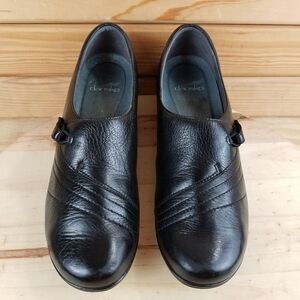 Dansko Franny Black Burnished Calf Leather Loafers Slip-On Casual Comfort Shoes Adjustable Strap