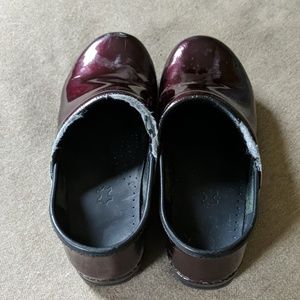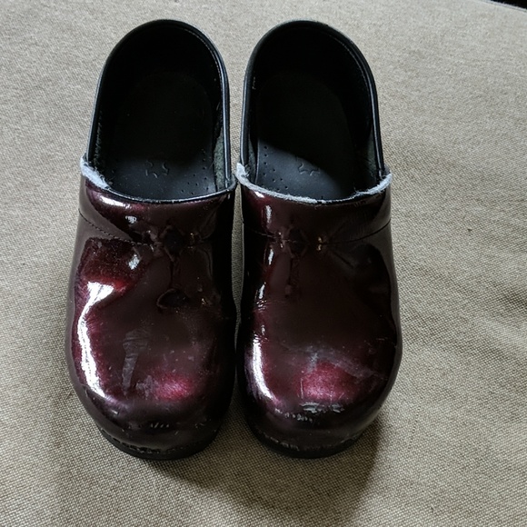Burgundy dankso slight scuff on toe and breakdown at top of shoe lots of life and super comfortable