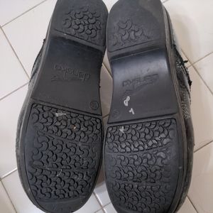 Shows wear (toe) inside the shoe and outside (leather lining)