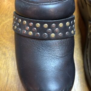 Black Dansko with decorative studs. Good shape. Some scuffs on toes. Very little signs of wear