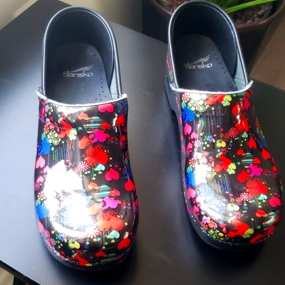 Dankso Clogs, size 42/10...great used condition..worn a few times, beautiful heart design with black patent leather background