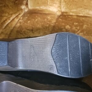 Trusted Dansko comfort. Leather upper. They are so comfortable, but my feet grew. They fit like a 8.5/9 and I am 9/9.5 now.