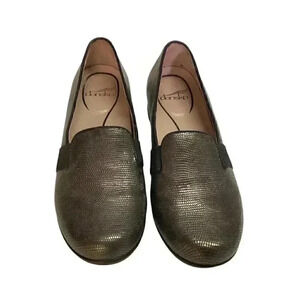 Dansko Addy Womens 7.5 8 38 Leather Loafers Shoes Pewter Metallic Slip On Flats