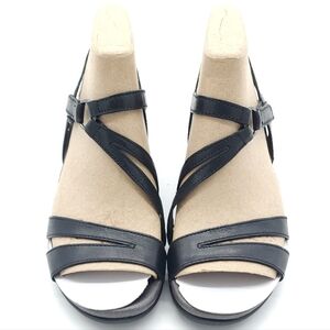 Dansko Addyson Kid Leather Black Wedge Sandals Women's Size 6.5/7