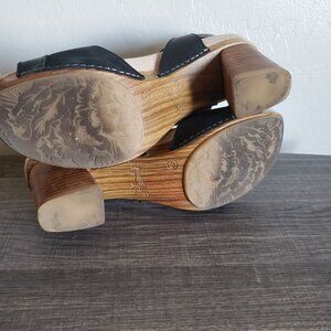 Dansko Anna Burnished Calf Leather Ankle Strap Sandals Stacked Block Heel Black Size Women's 8.5-9 (same as Dansko EU 39)