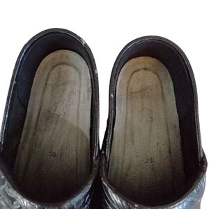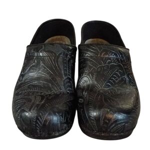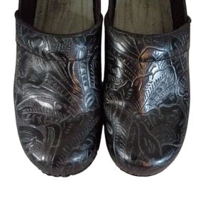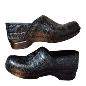 Experience unparalleled comfort with Dansko's black clogs, designed for all-day wear. These versatile clogs offer a sleek look, perfect for both casual outings and professional settings. Enjoy the blend of style and functionality with every step.