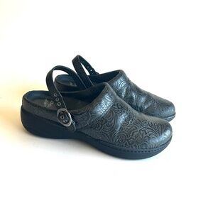 Dansko Black Grey Leather Clogs Sandals size EUR 40, US 9.5