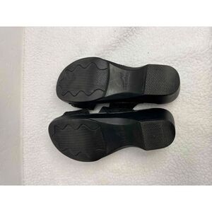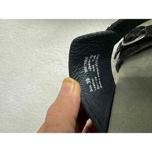 Features: Black, Leather, Two buckle straps, Suede footbed, Slides, Comfortable