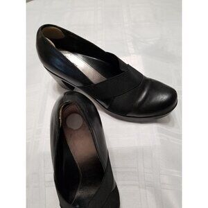 Dansko Black Leather Slip On Block Heels Shoes Women's 41 / 9.5 M