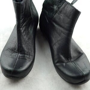 Dansko Black Leather Suede Wedge Booties Side Zip Size 41 10.5 11 Comfort Shoes