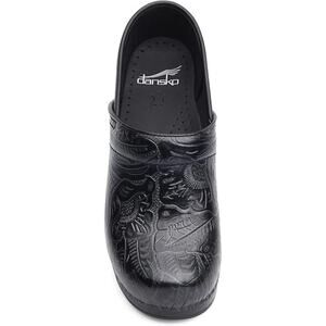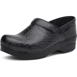 Dansko Black Leather Women's 9/EU 40 Professional Tooled Floral Embossed Clog