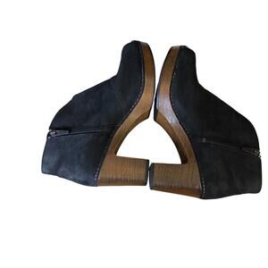 Dansko Black Nubuck Platform Heeled Cut Out Peep Toe Booties Shoes EUC 8.5- 9 39