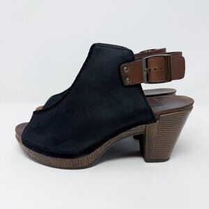 Dansko Black Oiled Leather Open Toe Booties Comfort Shoes Women's Size EU 41