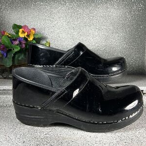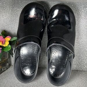 Dansko Black Patent Leather Clogs Mules Shoes 9.5 10