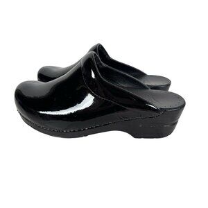 Preowned Dansko Black Patent Leather Open Back Clogs Sz 40 US 9 Womens Professional