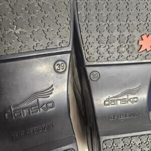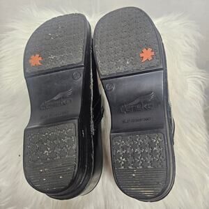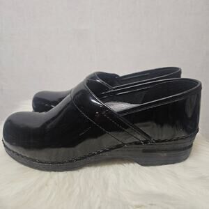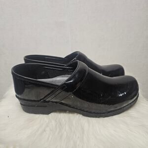 Dansko Black Patent Leather Professional Clogs in great condition. Small scuff on the toe and a few scratches as shown in photos.