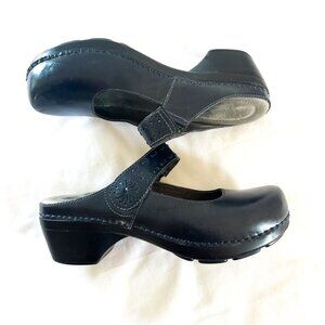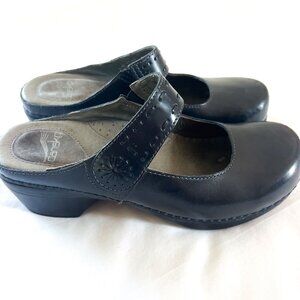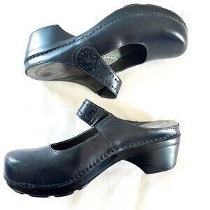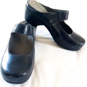 Dansko Black Solitaire Leather Mary Jane Clog Open Back Slip-On Size 38 US 8