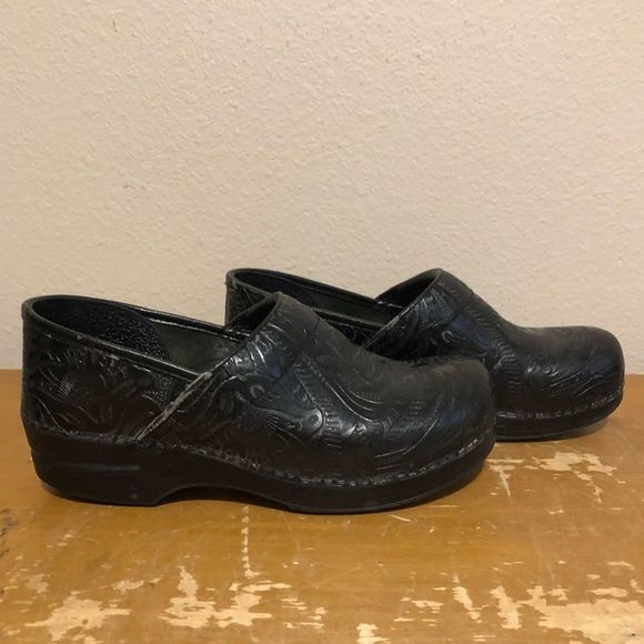 Dansko Black Tooled Leather Clogs Women’s Sz 10.5 / 41
