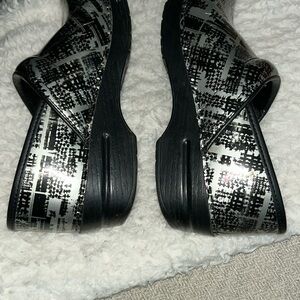 Dansko Black and Silver Textured Clogs