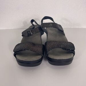 Great pre-owned condition Dansko Black with Silver Animal Print Clog Heeled Sandals