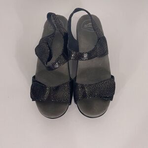 Dansko Black with Silver Animal Print Clog Heeled Sandals