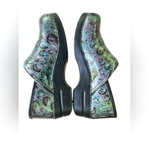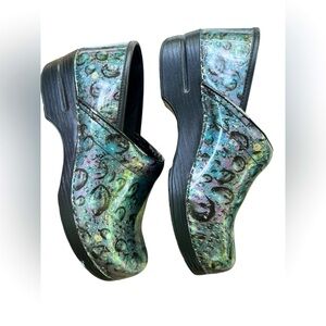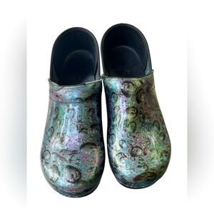 Dansko Blue Art to Wear Patent Leather Water Droplet Pattern Clog Size 40 Nurse