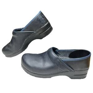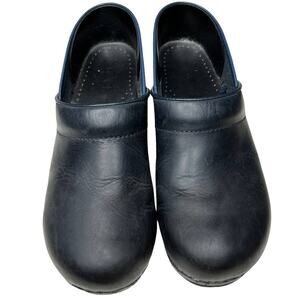 Dansko Blue Black Leather Clogs